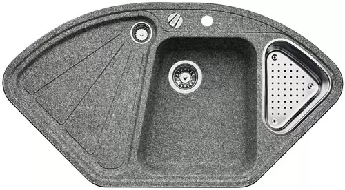 Модель DELTA сочетает функциональность и эстетику угловой мойки. Основная чаша имеет трапециевидную форму. Крыло немного углублено, что позволяет использовать его в качестве дополнительной рабочей зоной. Коландер из нержавеющей стали повторяет форму чаши и служит для мытья и сушки овощей и фруктов. Рельефное крыло оборудовано дополнительным сливом для эффективного удаления излишков жидкости. Закругленные углы упрощают очистку труднодоступных мест.