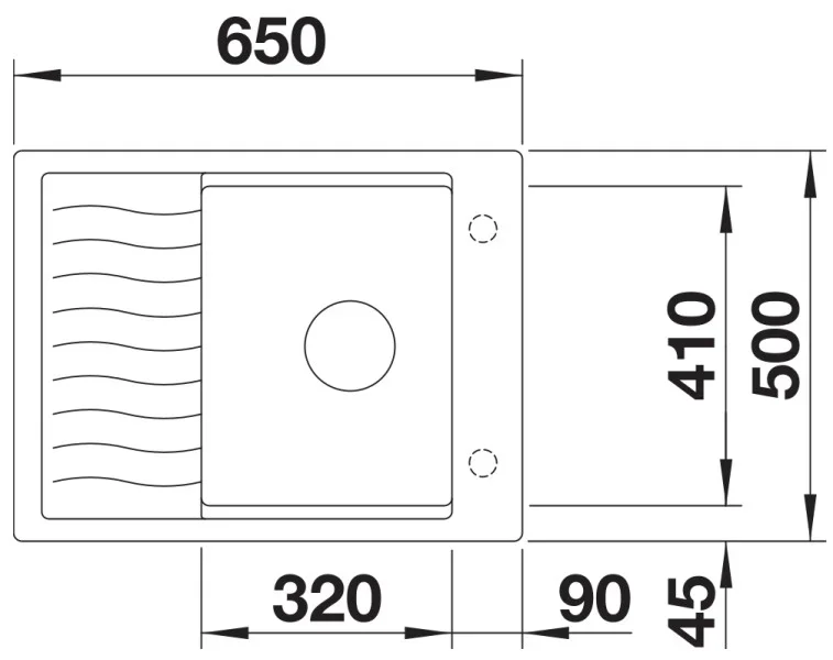 Мойка Blanco Elon 45 S — стильная накладная прямоугольная модель чёрного цвета, созданная для компактных и современных кухонь. Габариты 65×50 см делают её удобной для установки над столешницей в ограниченном пространстве. Ширина базы 45 см и параметры монтажного отверстия 45×48 см подходят для стандартных шкафов и облегчают замену старой раковины.