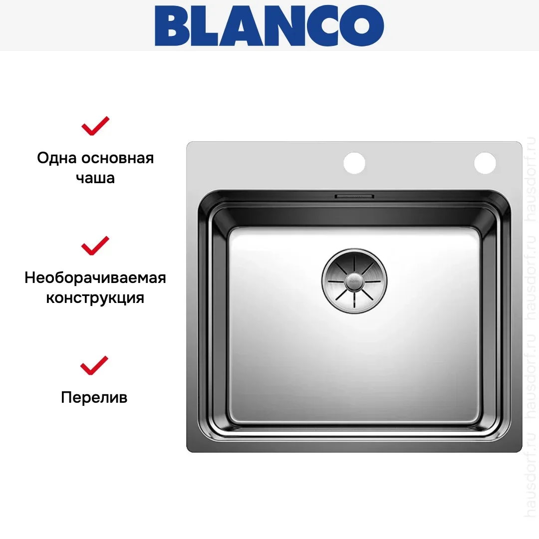 Обратите внимание на дизайнерские отличия мойки Бланко, которые помогут в создании идеальной кухни в вашем доме. Она выполнена в цвете нержавеющая сталь. Основной материал — нержавеющая сталь, он гарантирует надежность и долгие годы службы без повреждений. У этого покрытия приятная полированная текстура.