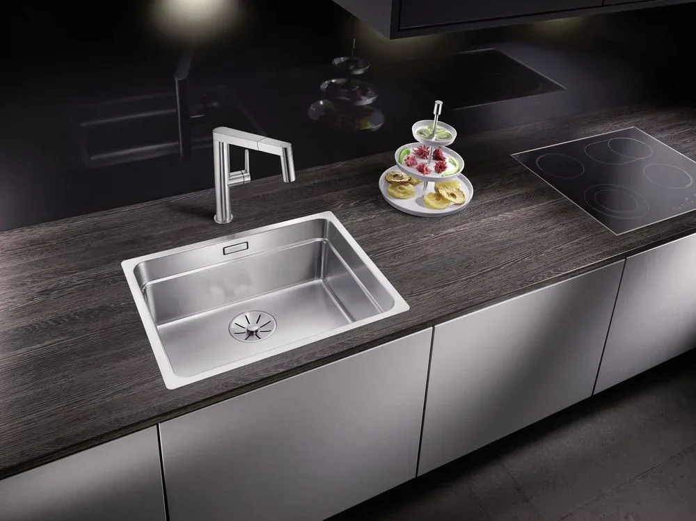Нержавеющая сталь — практичный выбор для кухни. Материал устойчив к коррозии, горячей посуде и бытовым моющим средствам. Полированная поверхность легко очищается, а при необходимости возвращает блеск мягкой полировкой. Для поддержания эстетики рекомендуется протирать раковину насухо после использования.
