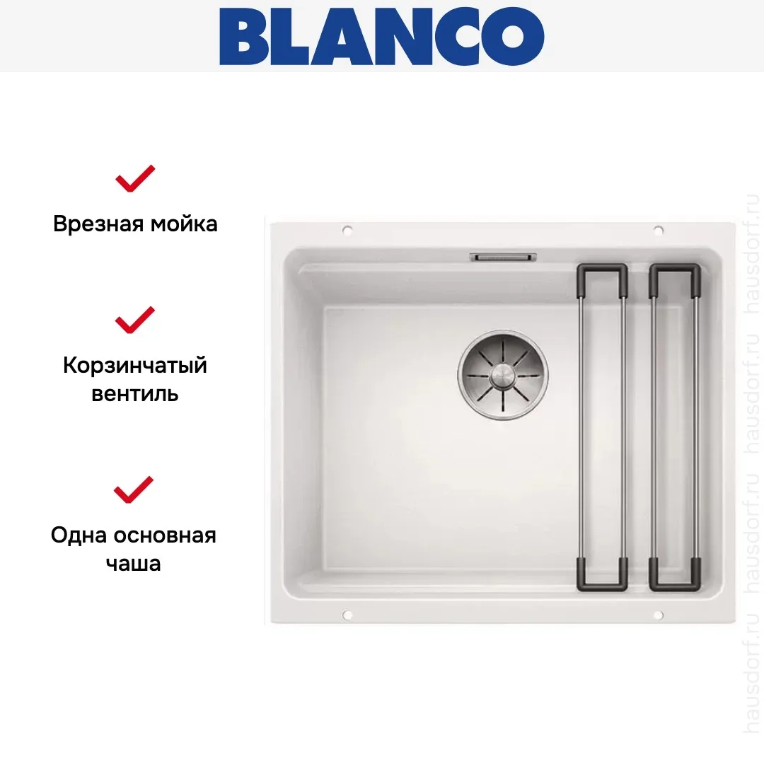 Мойка Blanco ETAGON 500-U SILGRANIT PuraDur оснащена высококачественным скрытым переливом C-overflow® и отводной арматурой InFino® с корзинчатым вентилем InFino. Многофункциональные держатели из нержавеющей стали делают использование мойки намного удобнее и комфортнее. Они помогут держать кухню в чистоте и порядке. Модель устанавливается вровень с рабочей поверхностью, имеет прямоугольную форму со скругленными краями. Данный вид мойки может идеально сочетаться с единой поверхностью, где расположена варочная панель и мойка, а также с угловыми вариантами кухонной мебели.