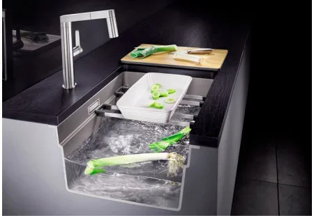 Врезная мойка Blanco — отличный выбор для тех, кто хочет создать гармоничное кухонное пространство с полностью вписывающейся в него сантехникой. Преимущество такой конструкции — плотное прилегание к столешнице, так как вырез подбирается индивидуально под габариты модели. Под стыки не попадает вода, поэтому срок службы значительно увеличивается, пользоваться ей удобно и приятно. Данная модель имеет стандартную форму, поэтому подходит большинству пользователей. Устанавливается под столешницу, благодаря чему не остается стыков, в которых копились бы загрязнения, а также увеличивается рабочая глубина.