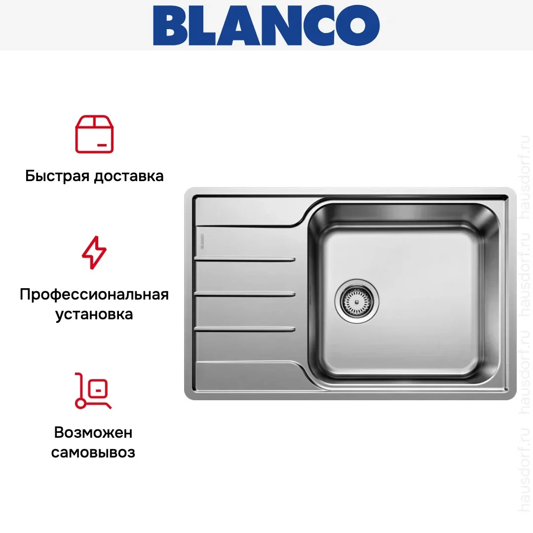 Мойка Blanco Lemis XL 6 S IF Compact — врезная прямоугольная модель с аккуратными габаритами 78×50 см и матовой поверхностью из нержавеющей стали. Она сочетает практичность и строгую эстетичность, подходя к разным стилям кухни.