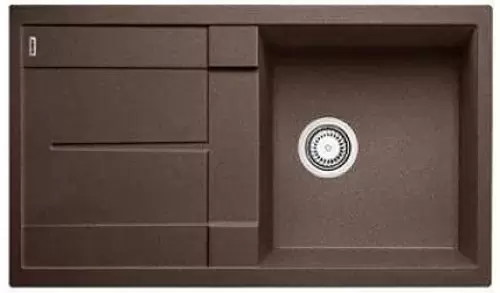 Обратите внимание на дизайнерские отличия мойки Бланко, которые помогут в создании идеальной кухни в вашем доме. Она выполнена в цвете кофе. Основной материал — гранит, он гарантирует надежность и долгие годы службы без повреждений. Крыло, расположенное слева или справа, является дополнительным рабочим пространством, на котором можно сушить посуду, разделывать мясо и нарезать овощи.