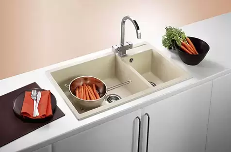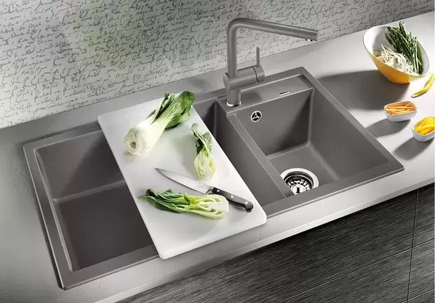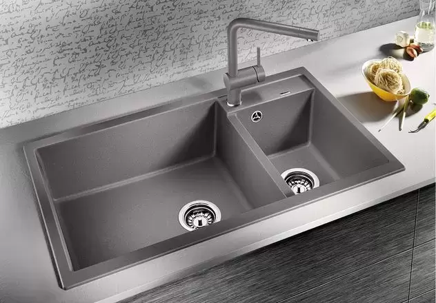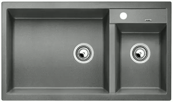 Эффектная кухонная мойка с двумя чашами. Модель из коллекции Blanco Metra подойдет для просторной кухни благодаря ширине 90 см. Универсальный дизайн и прямоугольная форма отлично выглядят в современной или классической кухне. Благодаря скругленным углам в ней не задерживается грязь. Так же универсален набор из 10 цветов — от белого и жасминового до цвета кофе, антрацит и алюметаллик. Мойка оснащена просторной, глубокой основной чашей и функциональной дополнительной чашей для мытья большой посуды или овощей. Широкая площадка позволяет удобно размещать даже несколько дополнительных аксессуаров. Модель изготовлена из запатентованного искусственного камня Silgranit PuraDur II, идеально гладкого и гигиеничного. Материал отличается высокой прочностью, поэтому появление царапин и повреждений исключено. Грязеотталкивающее покрытие гарантирует простоту в уходе. Имеется корзинчатый вентиль, который выполняет фильтрующую функцию, задерживая крупные частицы и не допуская их попадания в канализационную систему. Корзина вентиля легко извлекается, что позволяет без затруднений удалить оставшийся на ней мусор. Возможна установка клапана-автомата с отводной арматурой, который сливает воду путем нажатия кнопки на бортике, так что не нужно пачкать руки. Дополнительно можно приобрести разделочные доски, коландеры и решетки на раковину. Модель допускает установку под столешницу для более удобной очистки.