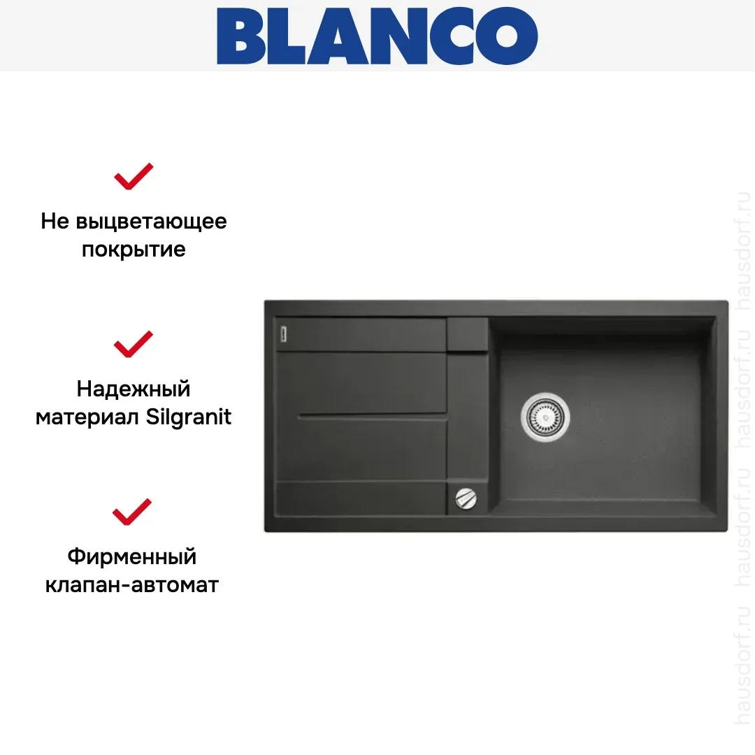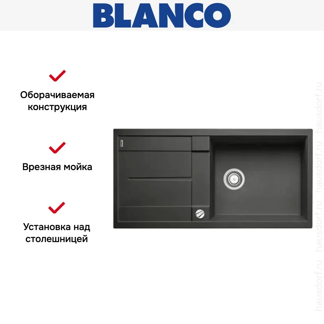 Мойка METRA XL 6 S — оборачиваемая модель от Blanco. Прямолинейный дизайн подчеркивает совершенство геометрических линий. Плоский кант привносит в образ эстетику. Большое крыло служит дополнительной рабочей зоной. Желобки обеспечивают сток излишкам воды от посуды или продуктов. Материал не впитывает пищевые красители и устойчив к воздействию бытовых кислот. Клапан-автомат расширяет функциональные возможности модели.