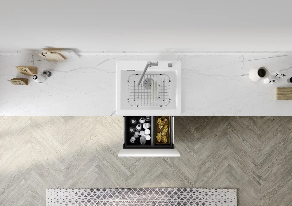 Конструкция не переворачиваемая, поэтому важно заранее выбрать сторону размещения смесителя и аксессуаров. Два отверстия под смеситель дают свободу: можно установить высокий излив и дозатор моющего средства, или смеситель с выдвижной лейкой. Скрытый перелив C-overflow и технология InFino интегрированы в конструкцию, что делает слив аккуратным и бесшумным. Эти решения уменьшают риск засоров и улучшают отток воды, сохраняя эстетичный вид фасада.
