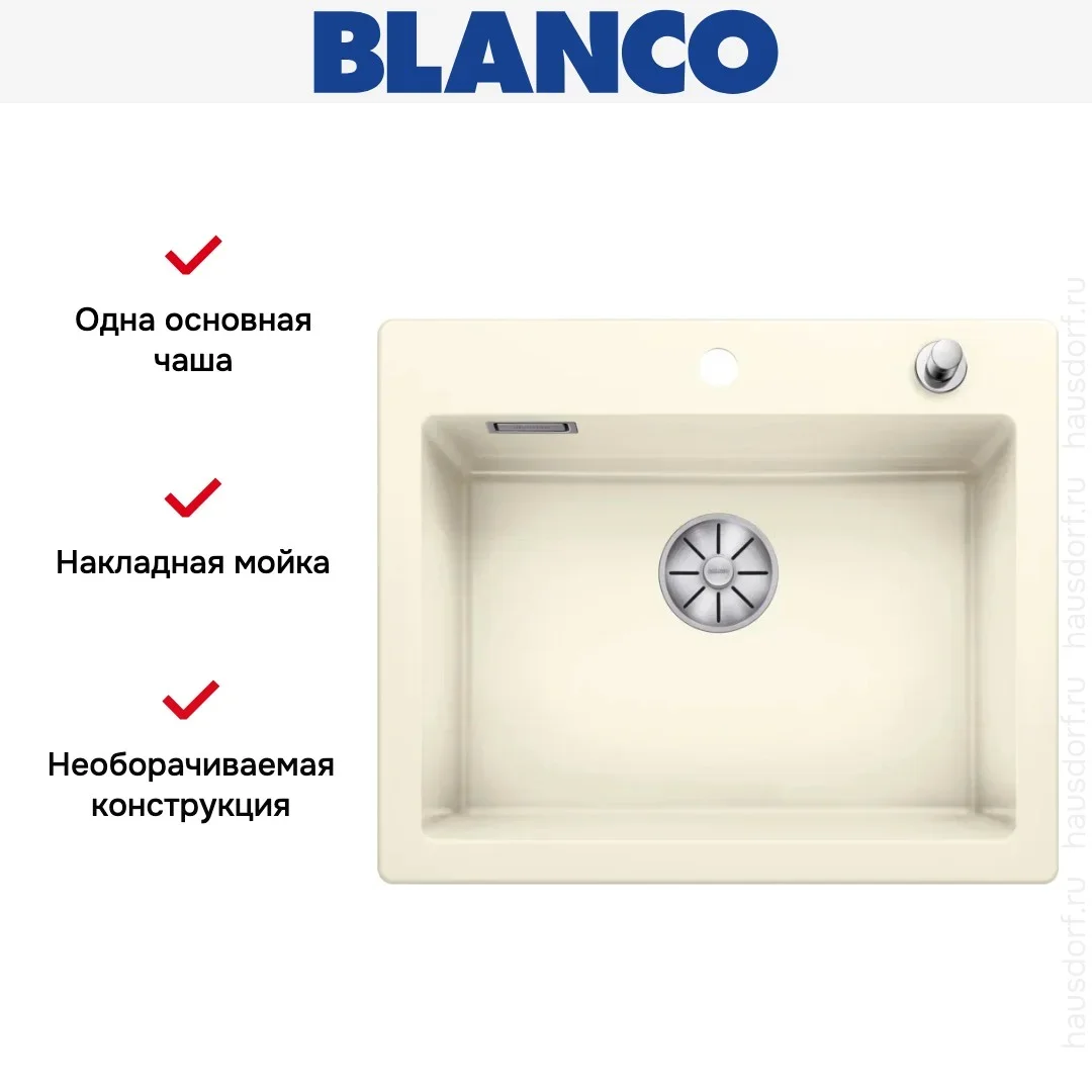 Мойка Blanco Palona 6 глянцевая магнолия — компактное решение с керамической чашей, которое сочетает практичность и стиль. Она привлекает мягким теплым оттенком и блеском глазури. Прямоугольная форма подчеркивает современную геометрию кухонного гарнитура. Поверхность выглядит цельной и аккуратной, создавая эффект дорогой отделки.