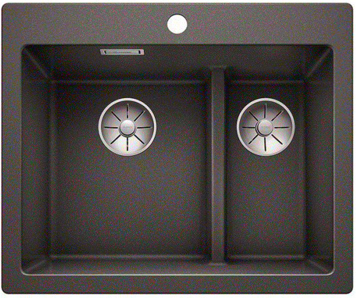 Элегантная мойка Blanco с двумя эргономичными чашами. Гигиеничный перелив C-overflow® и новая отводная арматура InFino™ с двумя корзинчатыми вентилями обеспечивают комфорт в эксплуатации.