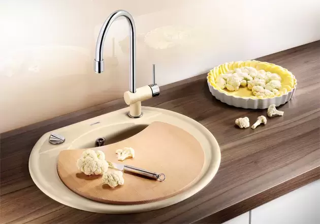 Немецкий производитель использует для своих моек запатентованный искусственный материал Silgranit™ puradur™ II. В его состав входит 80% натурального гранита и 20% связующих эпоксидных смол. Поверхность сильгранита не имеет пор, в которые могла бы забиться грязь или жир. Вы можете поставить в раковину горячую кастрюлю или сковороду и использовать любые моющие средства — материал очень прочен, химически устойчив и выдерживает температуру до 280?С. Покупателям предлагается 10 цветовых решений в сдержанных пастельных тонах. Глубина чаши составляет 18 см — такой размер исключает попадание брызг на столешницу. Отсутствие углов значительно упрощает чистку и уход.