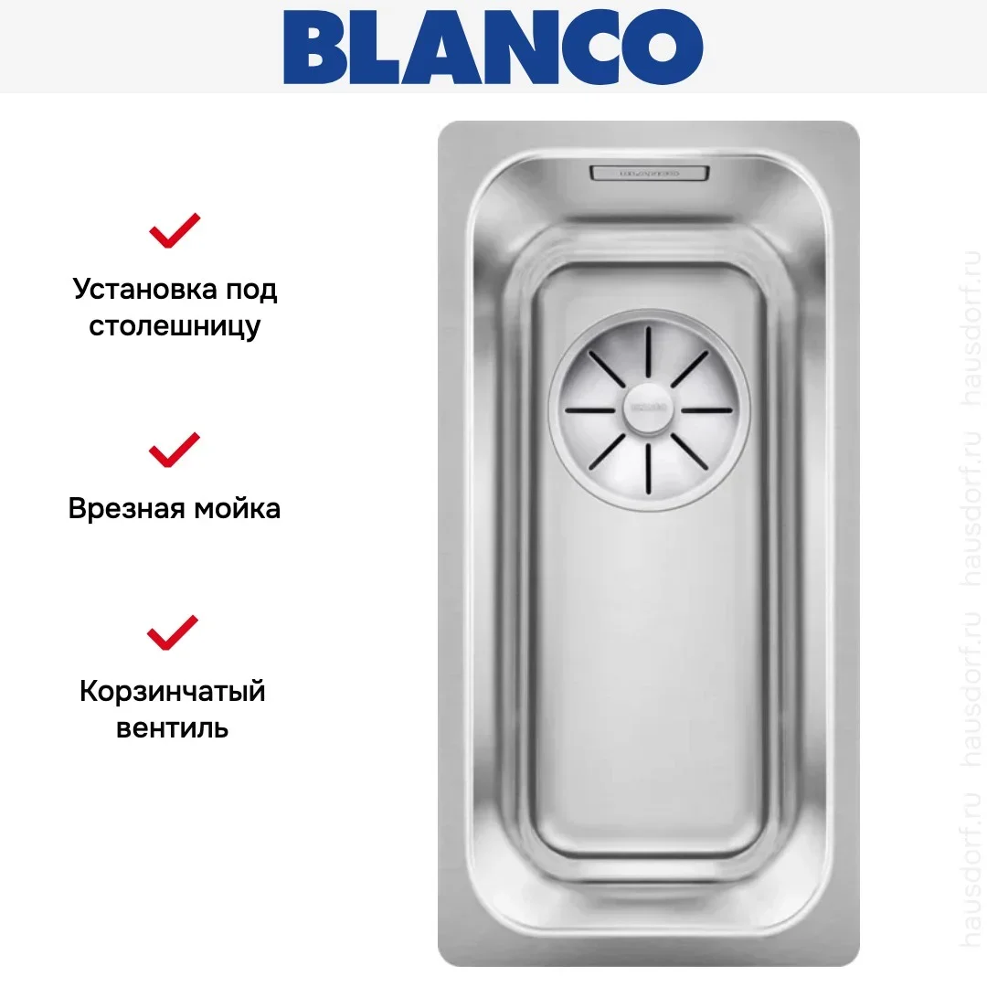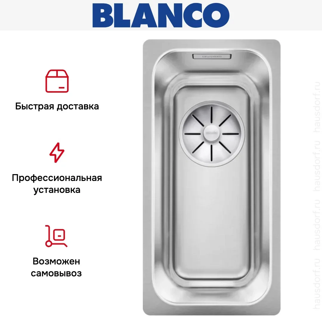 Обратите внимание на дизайнерские отличия мойки Бланко, которые помогут в создании идеальной кухни в вашем доме. Она выполнена в цвете нержавеющая сталь. Основной материал — нержавеющая сталь, он гарантирует надежность и долгие годы службы без повреждений. У этого покрытия приятная матовая текстура.
