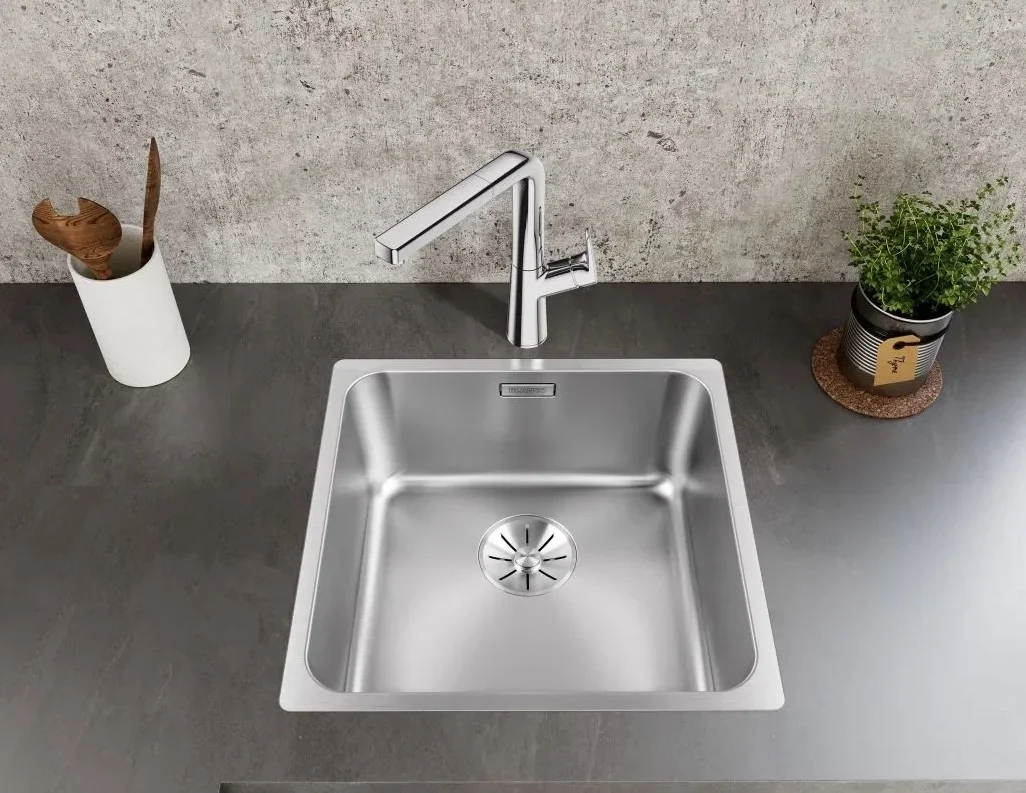 Мойка Blanco Solis 400 IF — компактное встроенное решение для современной кухни с матовой нержавеющей сталью и четкой квадратной формой. Дизайн выдержан в минималистичном стиле, он лаконичен и не отвлекает внимание от оформления столешницы. Плавные внутренние углы и ровные внешние грани создают аккуратный вид и облегчают уход за поверхностью. Возможность установки как над столешницей, так и вровень с ней дает свободу в планировке и позволяет добиться визуальной ровности. Матовая текстура металла уменьшает видимость мелких царапин и отпечатков, сохраняя эстетичный облик надолго.