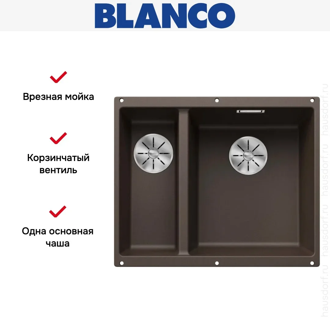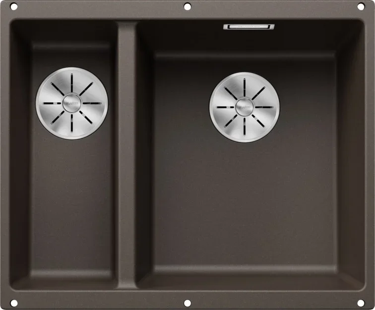 Мойка Blanco Subline 340/160-U Silgranit кофе, чаша справа. Эта врезная прямоугольная модель под столешницу сочетает компактные габариты 55,5×46 см с продуманной эргономикой и теплым кофейным оттенком. Материал Silgranit придает поверхности текстуру натурального камня и одновременно облегчает уход.