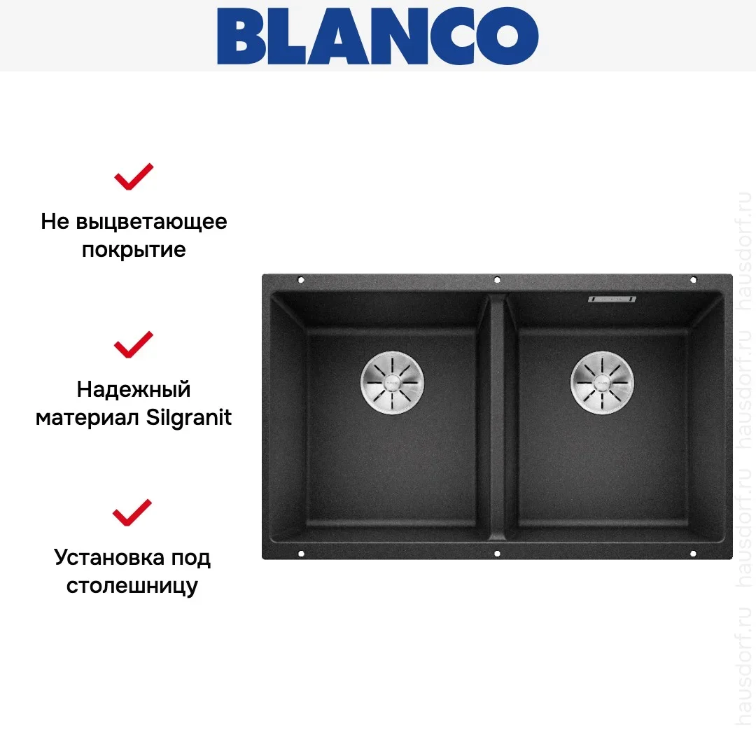 Мойка Blanco Subline 350/350-U Silgranit антрацит. Эта врезная прямоугольная раковина сочетает строгую геометрию и мягкую фактуру поверхности. Цвет антрацит придаёт интерьеру глубину и легко сочетается с металлическими и деревянными фасадами. Материал Silgranit обеспечивает матовый оттенок и приятное на ощупь покрытие, которое не боится ежедневных нагрузок. Покрытие устойчиво к царапинам и потемнению от красящих продуктов, поэтому внешний вид надолго остаётся аккуратным.