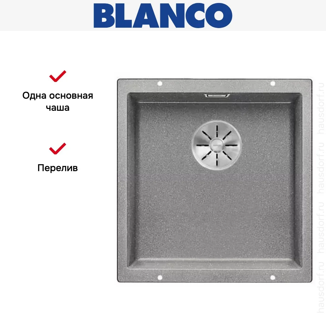 Мойка Blanco SUBLINE 400-U SILGRANIT отводная арматура InFino® алюметаллик темный