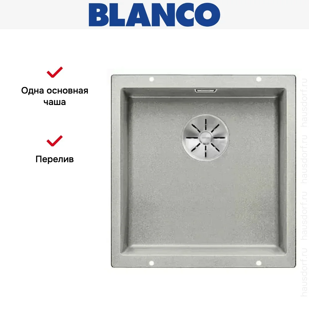 Мойка Blanco SUBLINE 400-U SILGRANIT отводная арматура InFino® алюметаллик