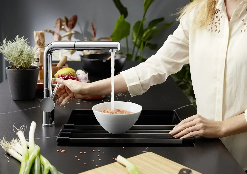 Материал Silgranit сочетает прочность и эстетику природного камня с практичностью композитной основы. Поверхность устойчива к царапинам, ударам и высоким температурам, поэтому посуда и аксессуары можно ставить прямо в чашу без риска повреждений. Низкая пористость материала препятствует впитыванию пятен и запахов, что упрощает уход и сохраняет гигиеничность. Цвет долго сохраняет насыщенность, даже при регулярном использовании и контакте с бытовой химией.