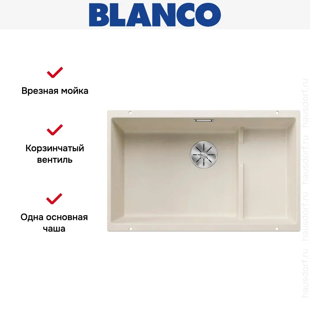 Обратите внимание на дизайнерские отличия мойки Бланко, которые помогут в создании идеальной кухни в вашем доме. Она выполнена в цвете мягкий белый. Основной материал — Silgranit, он гарантирует надежность и долгие годы службы без повреждений.