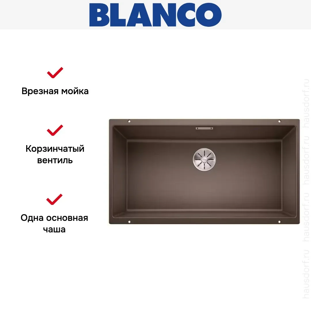 Мойка Blanco SUBLINE 800-U отводная арматура InFino® кофе