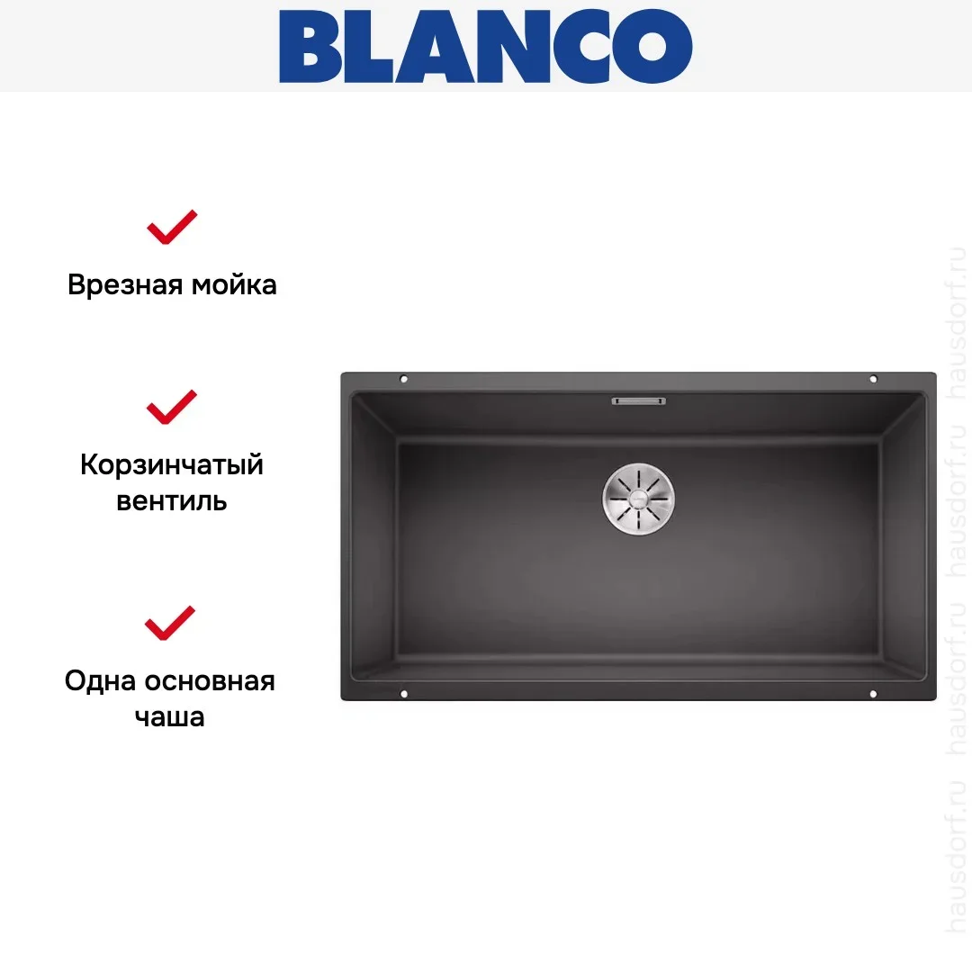 Мойка Blanco SUBLINE 800-U отводная арматура InFino® темная скала