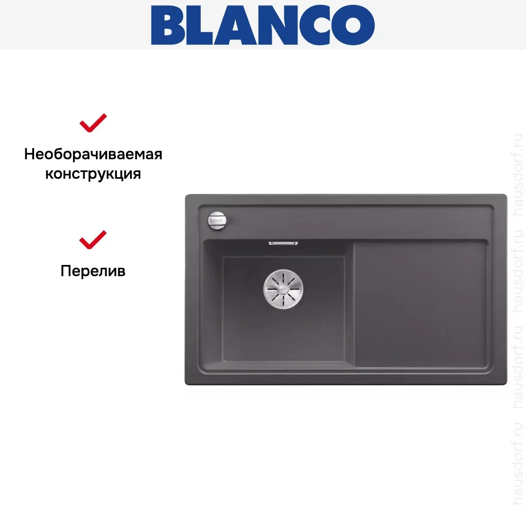 Мойка Blanco ZENAR 45S чаша слева клапан-автомат InFino темная скала