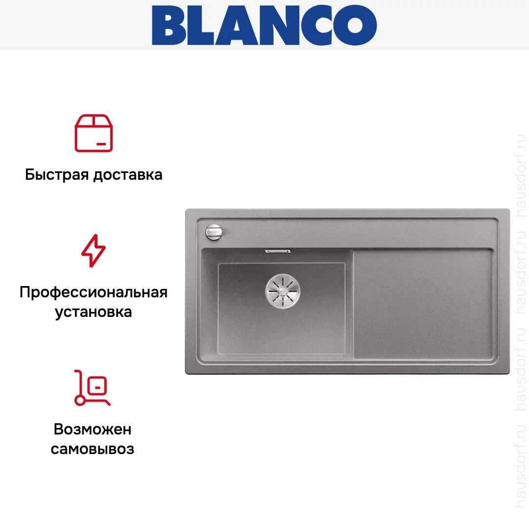 Мойка Blanco ZENAR XL 6 S чаша слева, доска стекло клапан-автомат InFino® алюметаллик