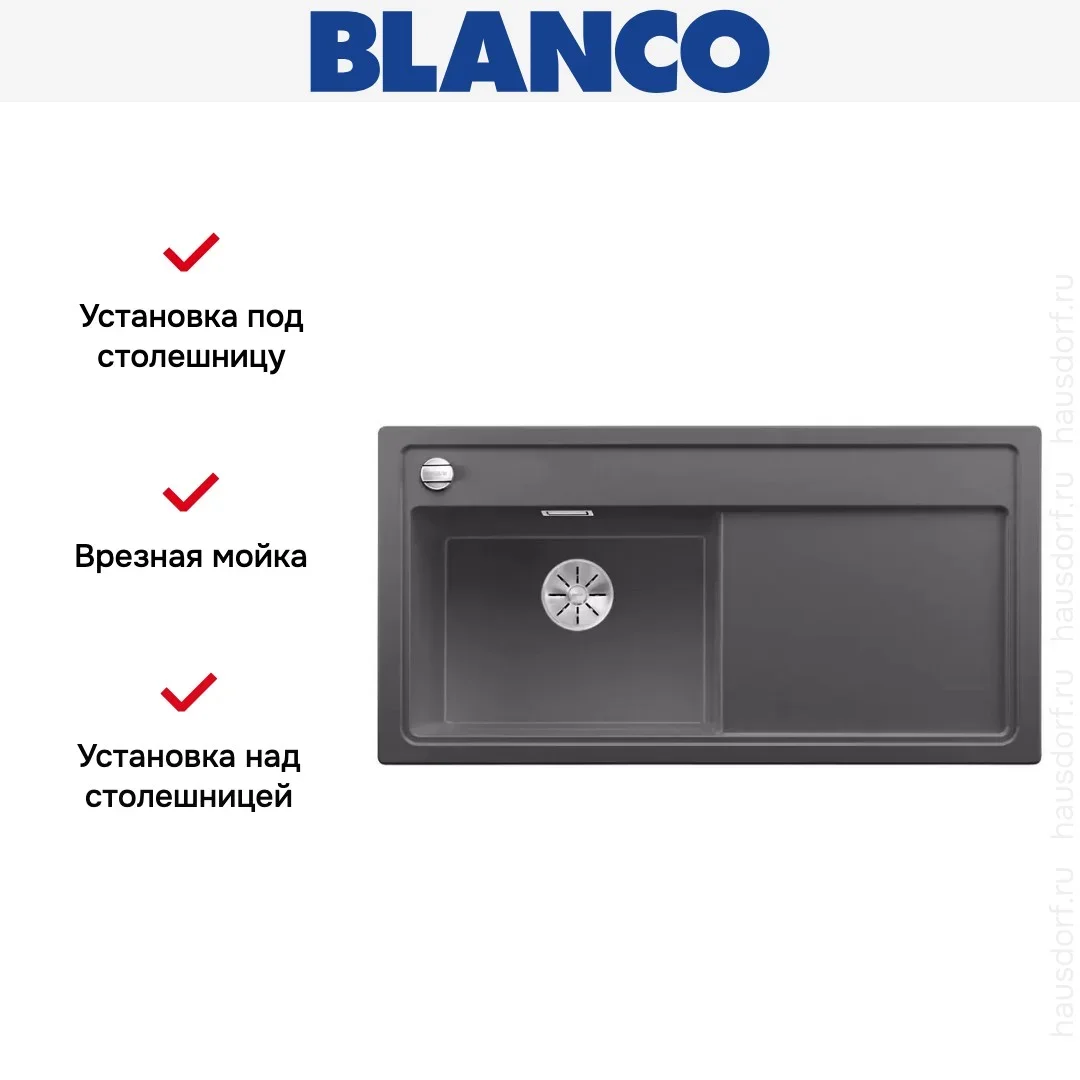 Мойка Blanco ZENAR XL 6 S чаша слева, доска стекло клапан-автомат InFino® темная скала