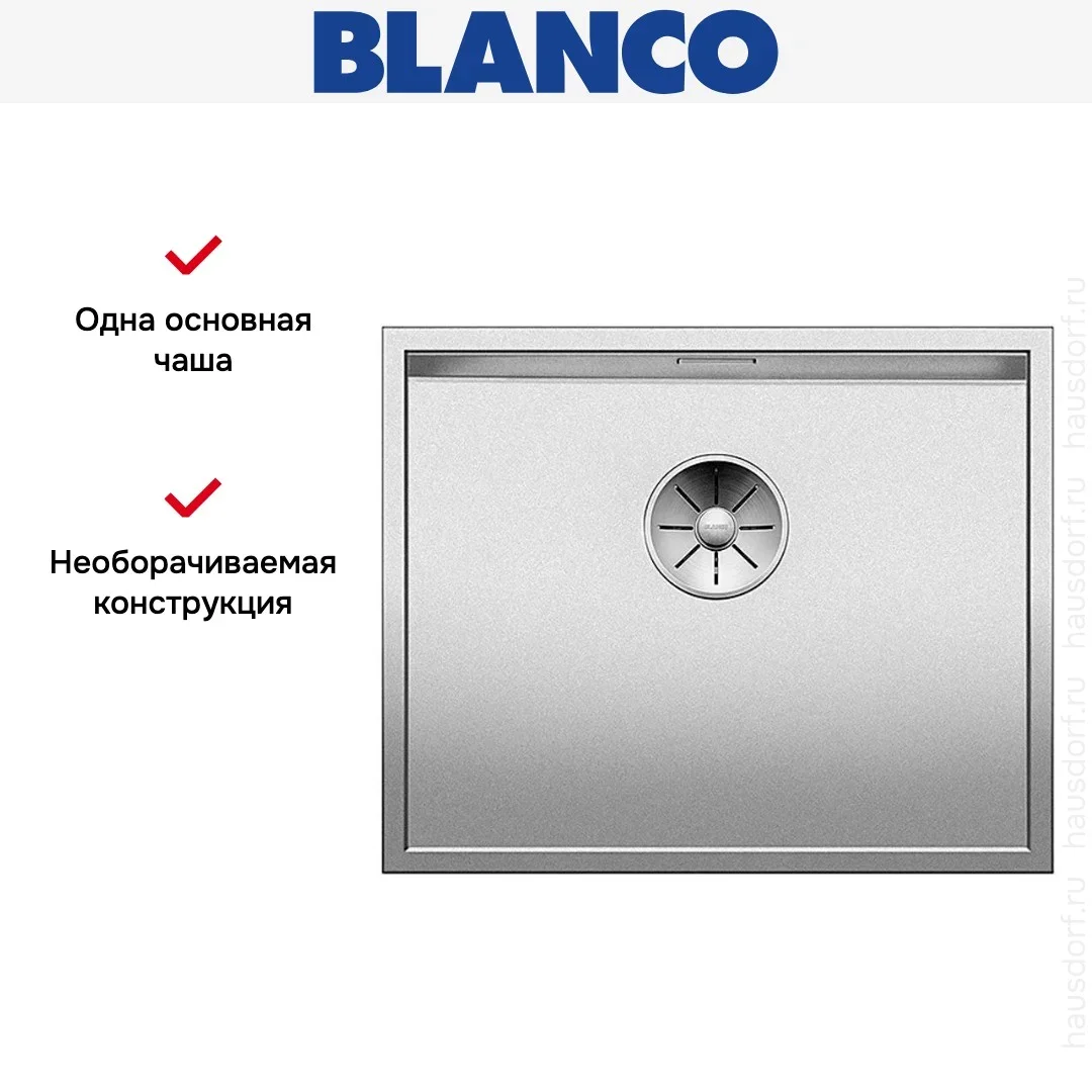 Обратите внимание на дизайнерские отличия мойки Бланко, которые помогут в создании идеальной кухни в вашем доме. Она выполнена в цвете нержавеющая сталь. Основной материал — нержавеющая сталь, он гарантирует надежность и долгие годы службы без повреждений. У этого покрытия приятная полированная текстура.