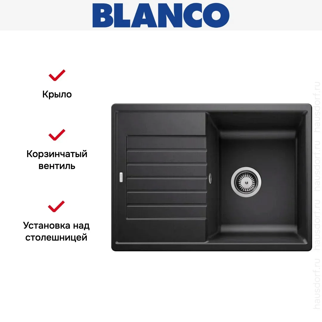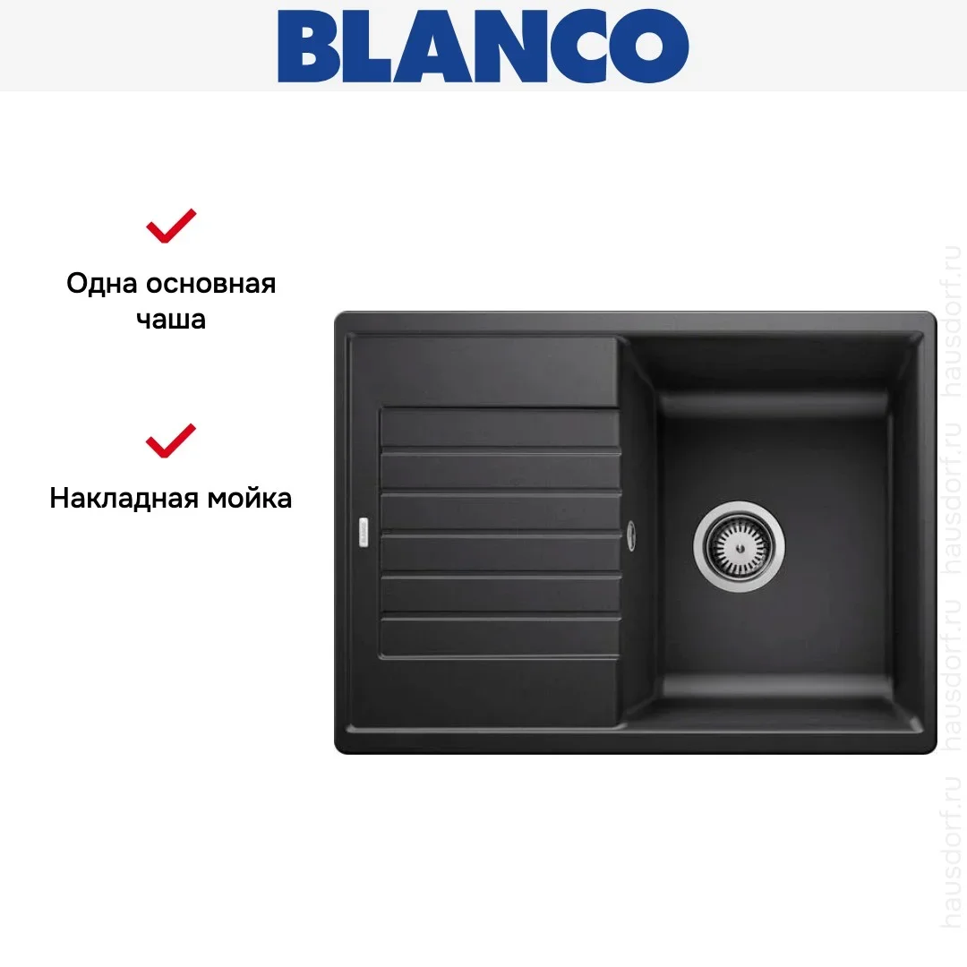 Накладная мойка Blanco — отличный выбор для тех, кто хочет создать гармоничное пространство с удобной сантехникой. простой в установке. Преимущество такой конструкции: легко подобрать практически к любой кухне и не придется демонтировать вместе с тумбой при ремонте или перестановке остальной мебели. Данная модель имеет стандартную форму, поэтому подходит большинству пользователей. Устанавливается над столешницей: это самый простой способ монтажа, зачастую с ним можно справиться даже без специалистов, главное — правильно рассчитать размеры ниши.