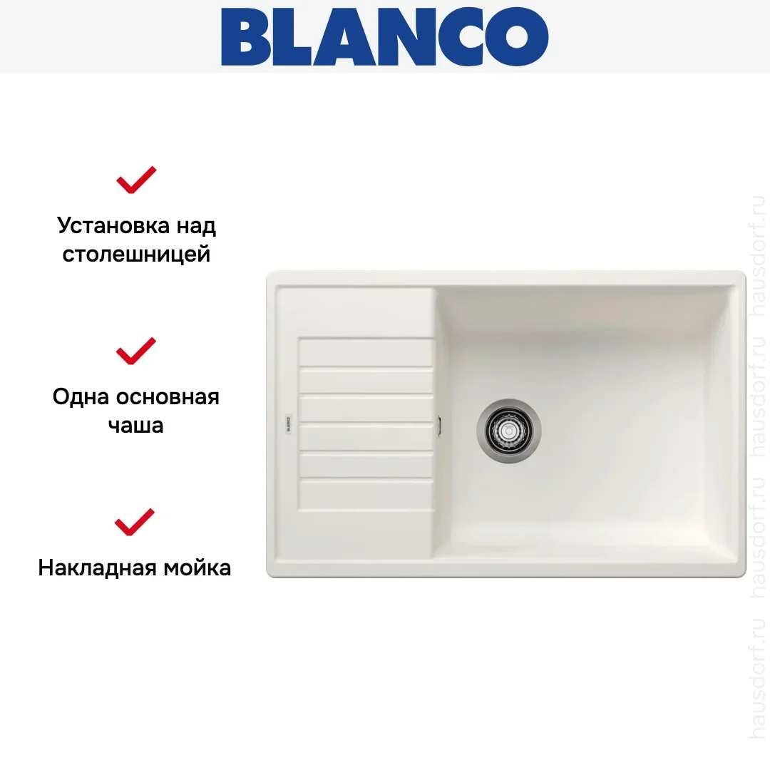 Мойка Blanco Zia XL 6 S Compact Silgranit белый — накладной вариант для тех, кто ценит чистые линии и функциональность в компактном корпусе. Ее прямоугольная форма и аккуратный белый цвет гармонично впишутся в минималистичные и классические кухни. Ширина 78 см и глубина 50 см обеспечивают заметное рабочее пространство, не занимая лишнего места.