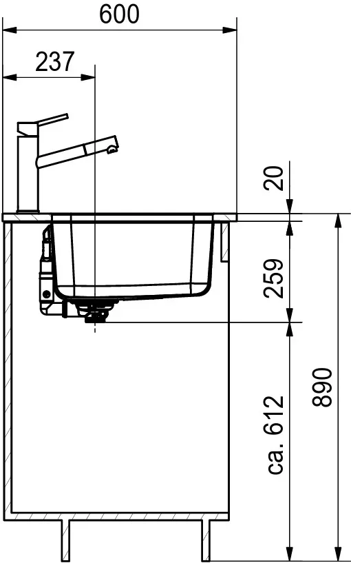 Модель предназначена исключительно для установки под столешницу, что создаёт эффект единой бесшовной поверхности и подчёркивает лаконичность интерьера. Такой монтаж особенно популярен в современных кухонных проектах, где важны чистые линии и простота в уходе. Для правильной установки требуется тумба шириной 50 см, а проём в столешнице должен составлять 42×41,5 см, чтобы обеспечить плотное прилегание и надёжную герметизацию.
