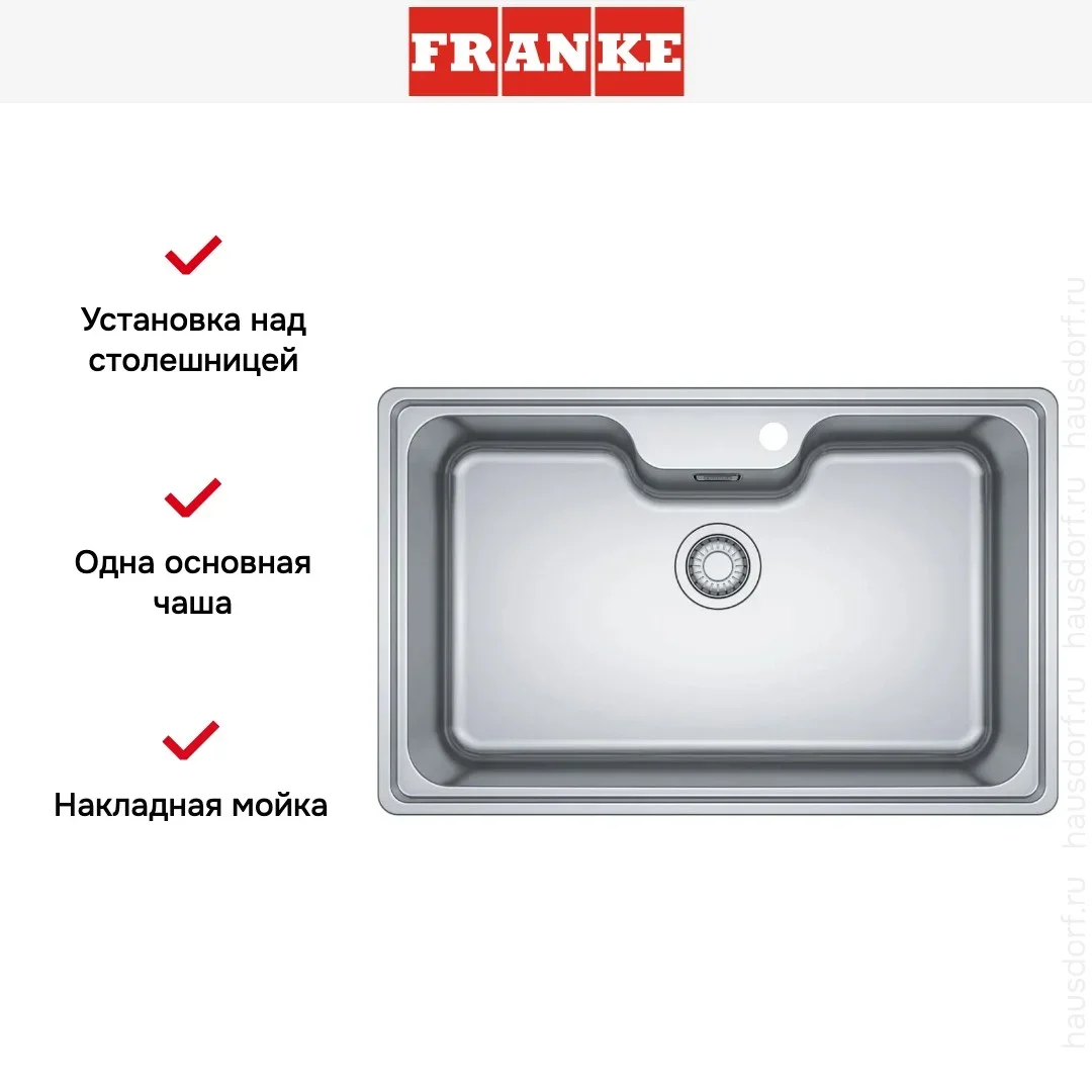 Мойка Franke BCX 610-81 TL из стали — вместительная и эргономичная накладная модель, разработанная для тех, кто ценит комфорт и надёжность на кухне. Прямоугольная форма с габаритами 51×22,35 см обеспечивает просторную рабочую зону, идеально подходящую как для мытья крупногабаритной посуды, так и для подготовки ингредиентов. Увеличенная глубина чаши — 22,35 см — эффективно предотвращает разбрызгивание и делает процесс эксплуатации более удобным.