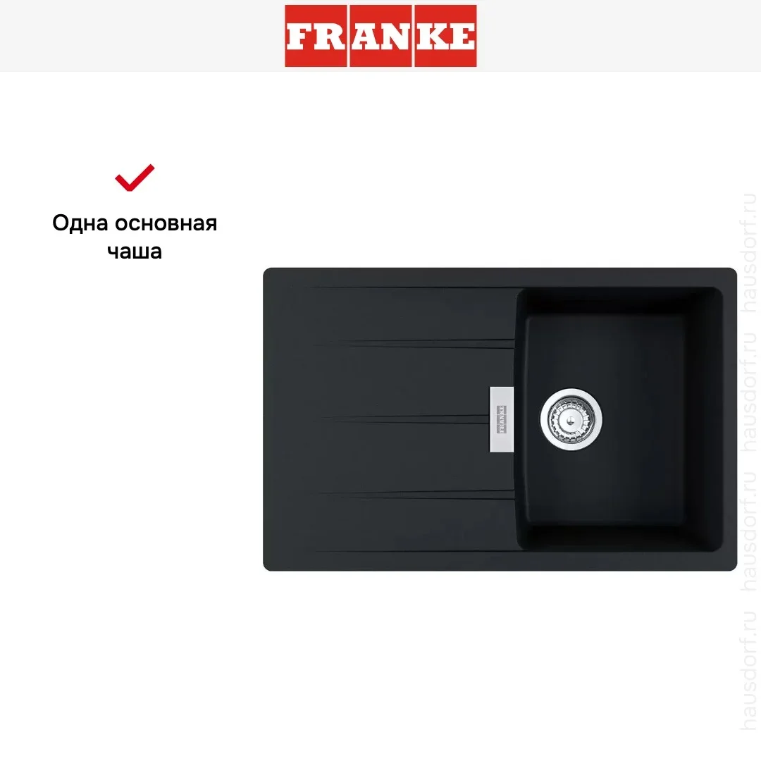 Обратите внимание на дизайнерские отличия мойки Франке, которые помогут в создании идеальной кухни в вашем доме. Она выполнена в цвете оникс. Основной материал — фрагранит, он гарантирует надежность и долгие годы службы без повреждений. Крыло, расположенное слева или справа, является дополнительным рабочим пространством, на котором можно сушить посуду, разделывать мясо и нарезать овощи.