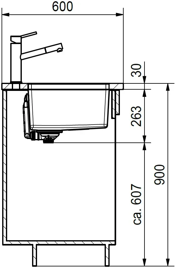Модель предназначена исключительно для установки под столешницу, что создаёт эффект единой бесшовной поверхности и подчёркивает современный минималистичный стиль интерьера. Такой монтаж особенно востребован в премиальных кухонных проектах, где важны чистота линий, простота ухода и визуальная целостность пространства. Для правильной установки требуется тумба шириной 60 см, а проём в столешнице должен составлять 60×40 см, что обеспечивает плотное прилегание и надёжную герметизацию.