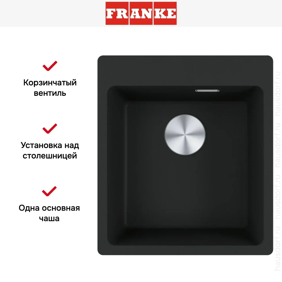 Мойка Franke MRG 610-39 FTL черного матового цвета — стильная врезная модель, сочетающая в себе глубину цвета, функциональность и современный дизайн. Прямоугольная форма с габаритами 44×50 см обеспечивает вместительную чашу глубиной до 50 см, что гарантирует комфорт при мытье посуды и эффективно предотвращает разбрызгивание воды. Такие параметры делают изделие особенно практичным даже при интенсивной эксплуатации.