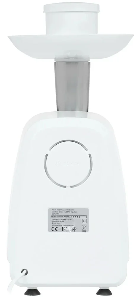 Мясорубка Bosch MFW2515W — это практичный и компактный кухонный агрегат, созданный для тех, кто ищет надёжное решение для повседневной переработки продуктов без излишней сложности. Стационарная модель обеспечивает стабильную производительность на уровне 1,7 килограмма в минуту, что делает её отличным выбором для приготовления фарша, овощных смесей, начинок для пирогов или домашних колбасок в условиях небольшой семьи или дачной кухни.