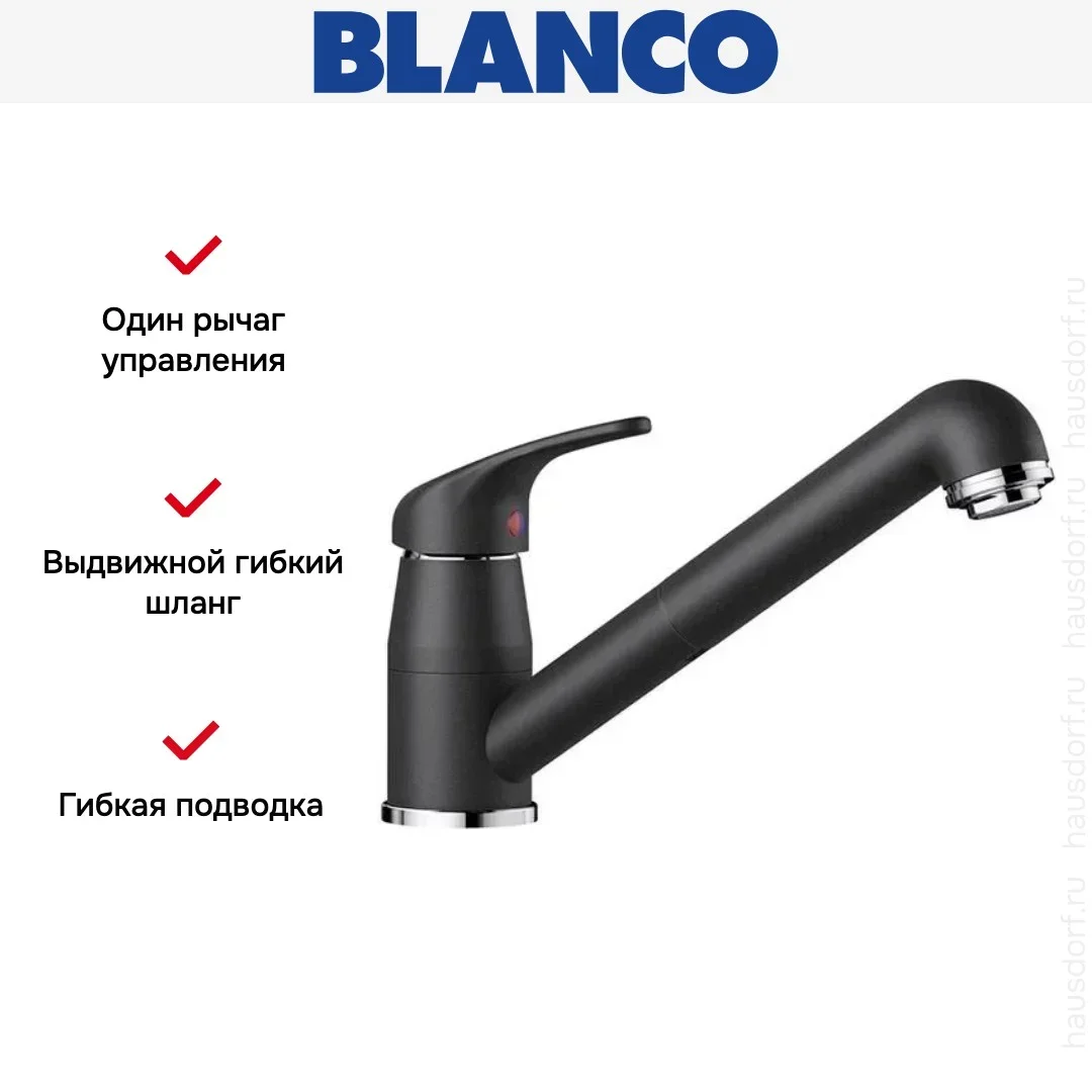 Модель Blanco Daras-S Silgranit антрацит 517732 устанавливается привычным способом: на бортик мойки или ванной в предназначенные для этого отверстия (они могут быть вырезаны производителями заранее, но если нет, при достаточной ширине можно добавить их самостоятельно). Гибкая подводка позволяет расположить сантехнику в любом удобном месте, при этом нужно учитывать несколько важных нюансов: для максимальной надежности лучше выбирать сильфонные рукава, нельзя использовать ее вместо стационарного водопровода, только как соединительный элемент для крана.
