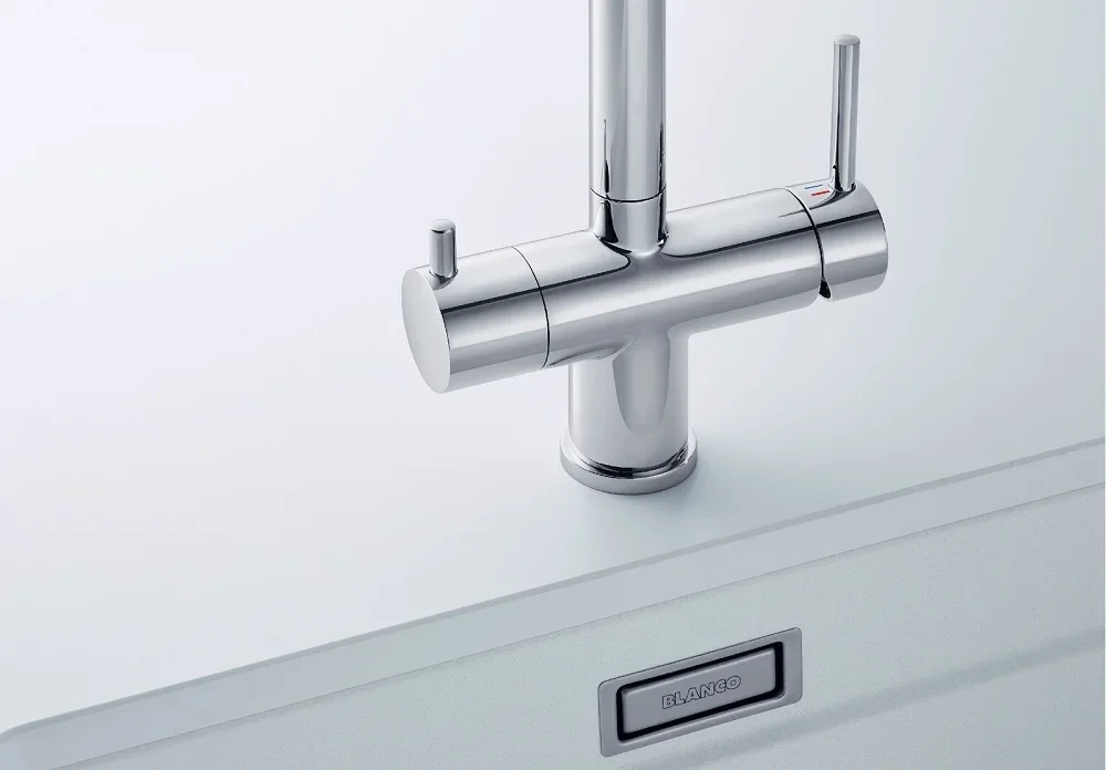 Управление интуитивно понятное и безопасное. Двухрычажный механизм позволяет точно регулировать подачу воды и температуру без лишних движений. Керамический картридж обеспечивает плавный ход рычагов и долгий срок службы без протечек. Аэратор экономит воду и смягчает струю, уменьшая разбрызгивание и создавая более комфортный поток. Наличие отдельного канала и отдельного рычага для фильтрованной воды позволяет получить питьевую жидкость без посторонней примеси из общего тракта.