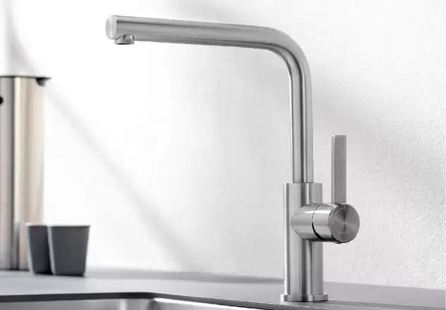 Стильный однорычажный смеситель из нержавеющей стали. Высокий излив позволяет без труда наполнять водой разную посуду. Первичное положение рычага рассчитано на холодный старт, поэтому вы экономите горячую воду, регулируя подачу так, как вам нужно.