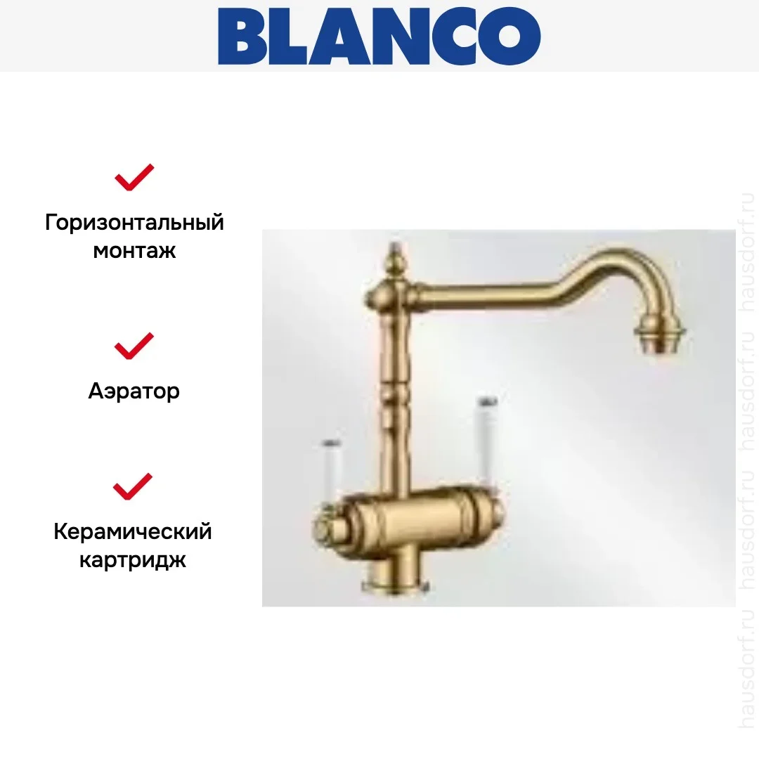 Смеситель SORA — изысканная модель от Blanco. Классический дизайн подходит для интерьеров в стиле ретро или кантри. Модель сочетает элегантные формы и широкий функционал. К изделию можно подключить фильтр, для которого предусмотрен отдельный рычаг управления. Ручки обладают плавным ходом для комфортной и точной регулировки мощности потока. Хромированная поверхность устойчива к высоким температурам, не боится известкового налета и коррозии.