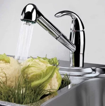 Специальная насадка позволяет выдвинуть излив как маленький шланг и направить струю в слишком высокую кастрюлю, которая не помещается под стационарным краном, на овощи в раковине, на загрязнения в неудобных уголках мойки, которые нужно удалить и т.д. Благодаря особой конструкции вы можете также направить воду из раковины в ванну или из одной чаши мойки в другую одним поворотом крана в нужную сторону.