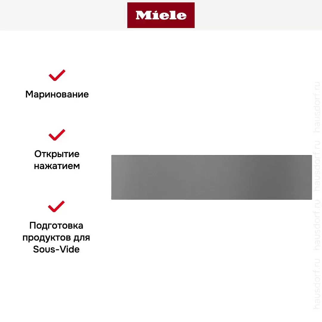 Вакуумный упаковщик бренда Miele позволяет облегчить многие кухонные процессы: быстро упаковать продукты и увеличить их срок хранения за счет вакуумирования, замариновать ингредиенты для различных блюд, консервировать овощи или фрукты, провести грамотную подготовку к приготовлению Sous-Vide.