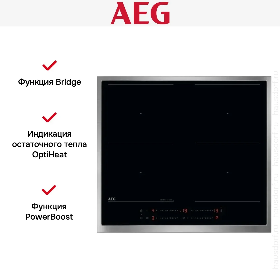 Варочная панель AEG TO64IM00XB сочетает минимализм дизайна и продуманные технические решения. Ее конструкция высотой всего 4,9 см и черная стеклокерамическая поверхность легко вписываются в современный интерьер. Рамка из нержавеющей стали защищает край от сколов и обеспечивает эстетичный переход между варочной поверхностью и столешницей, а гладкое покрытие упрощает уход и чистку после готовки.