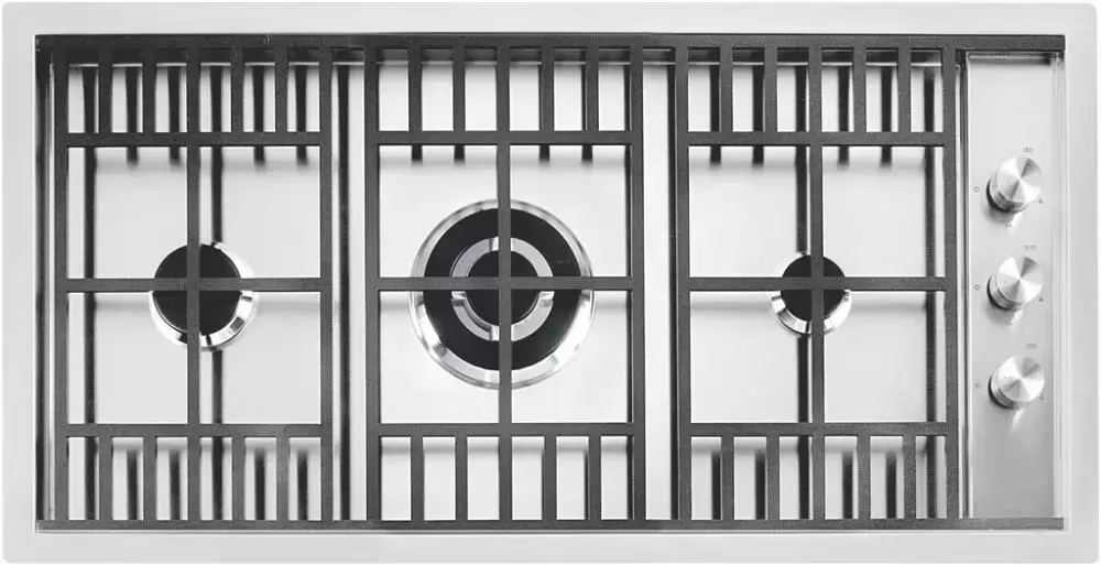 Выбор газовой варочной панели чаще всего обусловлен тем, что в частный дом или квартиру проведен именно газ в качестве обогрева. Работать с этой моделью довольно просто, так как мощность нагрева видна невооруженным взглядом — по силе огня в горелке. Количество конфорок в этой модели: 3. Горелки с тройной короной имеют несколько ступеней нагрева — в зависимости от них образуется несколько кругов пламени.