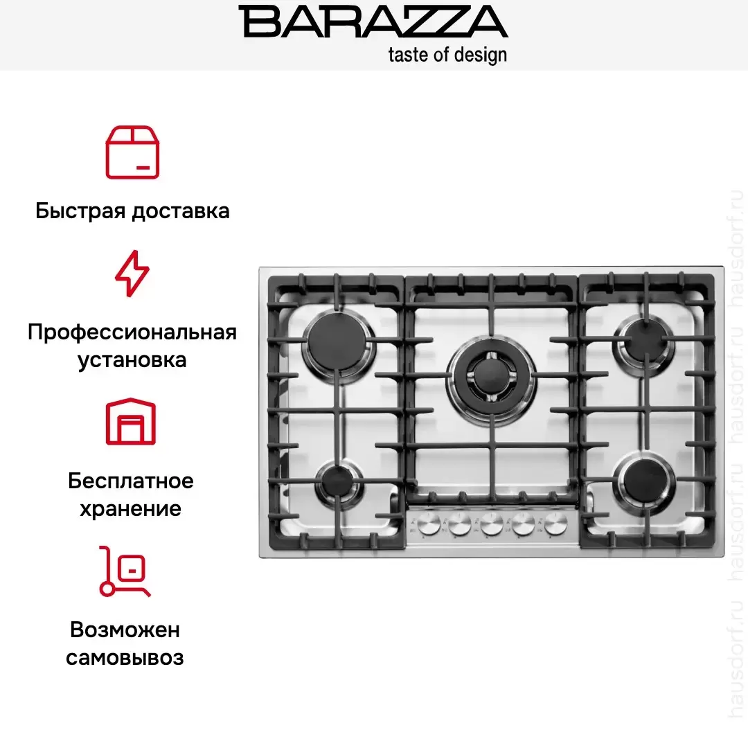 Варочная панель Barazza работает как с природным (проводным), так и с баллонным газом — благодаря этому вы можете поставить ее как в городскую квартиру, так и в частный дом. Чтобы правильно подвести газ к конфоркам, обеспечить необходимое давление и избежать утечек, используйте специальные переходники, которые идут в комплекте. Производители позаботились о безопасности использования, установив защитные термопары на каждую горелку, которые определяют, что пламя погасло, и блокируют подачу топлива.