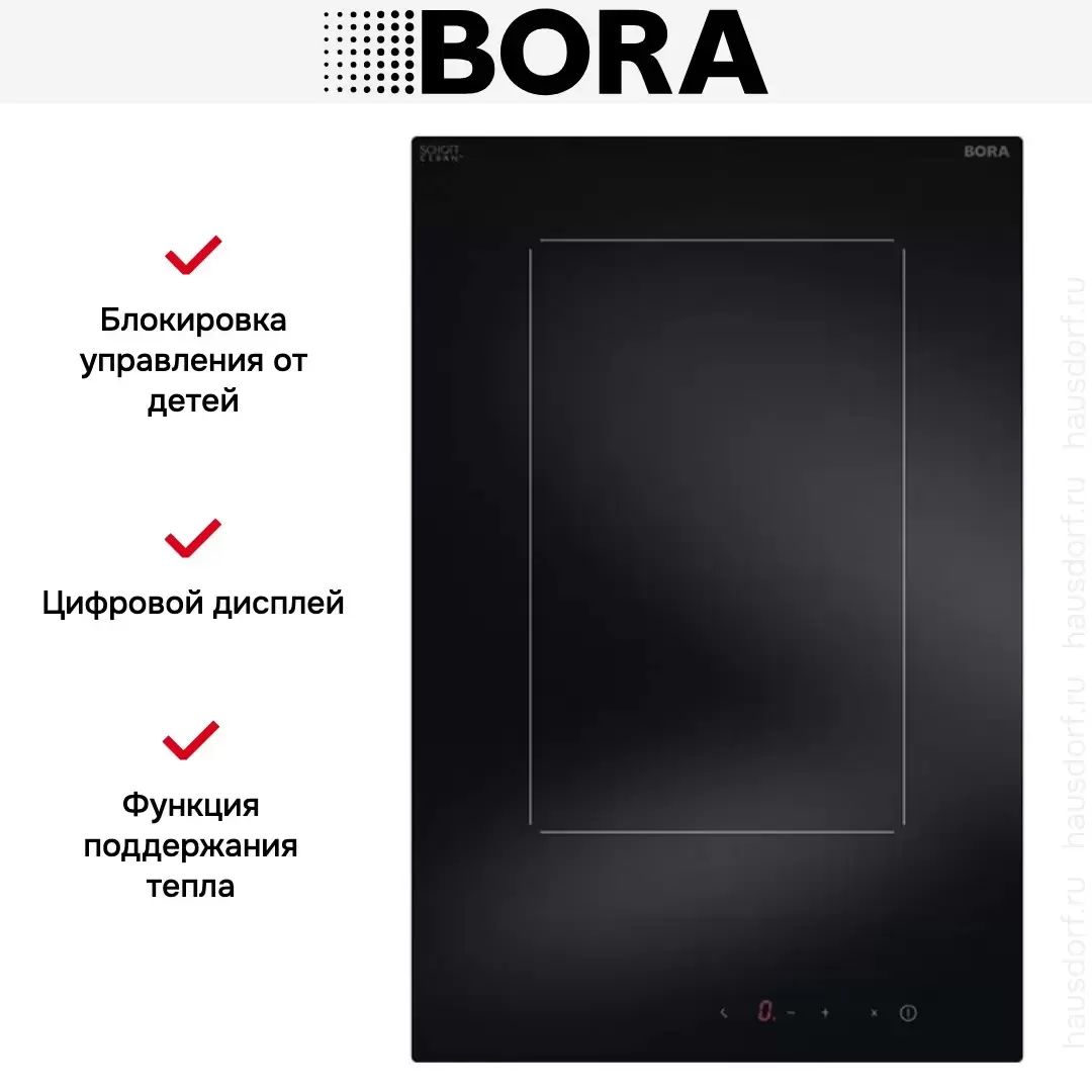 BORA CCB1 — компактная варочная панель с прямоугольной зоной нагрева HiLight. Модель создана специально для использования с противнем для гриллирования продуктов UGPC1. Удобный электронный таймер позволяет запрограммировать время подогрева или приготовления пищи. Для безопасной эксплуатации предусмотрены функция защиты от детей и система индикации остаточного тепла.