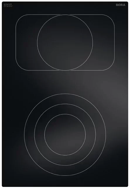 Варочная панель BORA PC3B — узкая варочная панель со стеклокерамической панелью конфорок. Модель оборудована двумя электрическими зонами нагрева с девятиступенчатой системой регулировки уровня мощности. Индикация остаточного тепла и функция защиты от детей гарантируют безопасную эксплуатацию устройства.