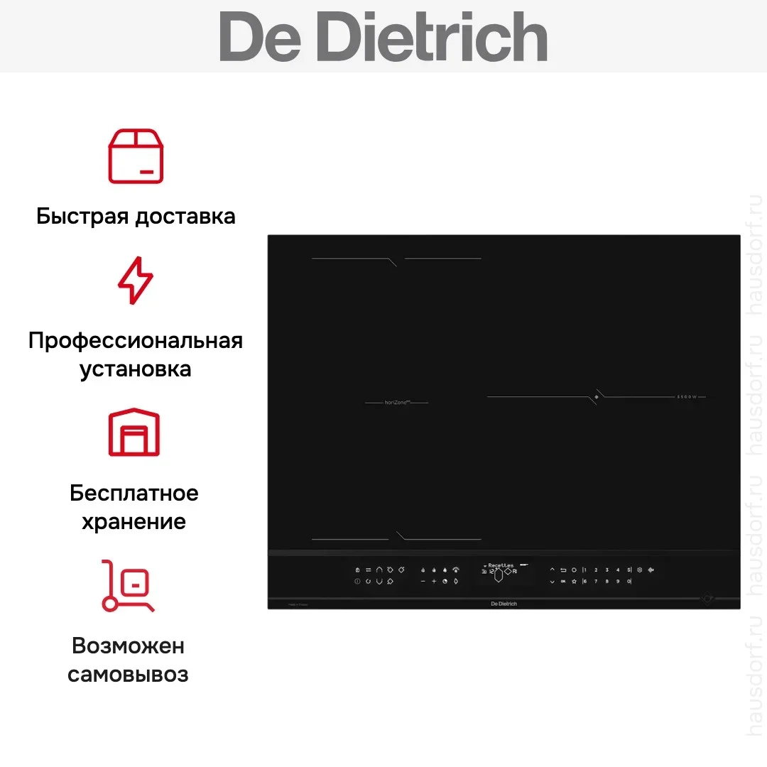 Варочная панель De Dietrich DPI4332BP — стильное решение для современной кухни с черной стеклокерамической поверхностью в дизайне Philharmonie.
