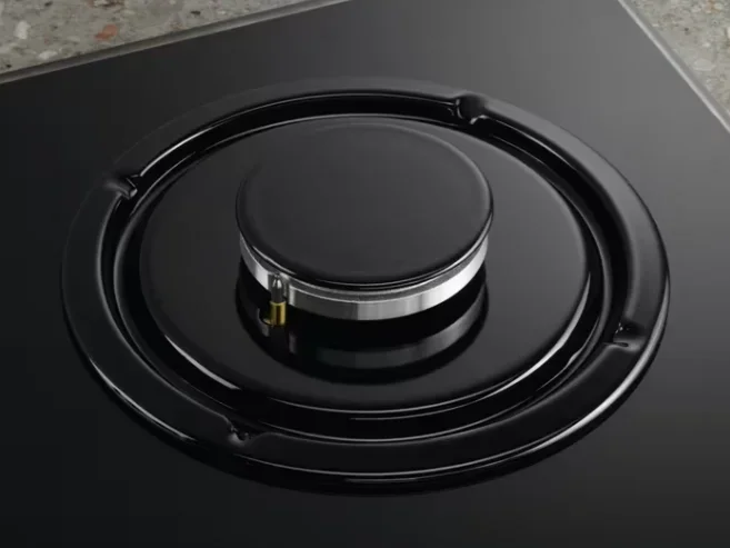 Компактные размеры — всего 4×59,5×51 см — и минимальная высота корпуса обеспечивают лёгкую интеграцию в столешницу. Для встраивания требуется ниша размером 56,1×48,1 см, что позволяет установить панель точно и аккуратно, без видимых зазоров. Независимый тип монтажа и подключение к газу позволяют использовать панель как на новых кухнях, так и при обновлении существующей техники.