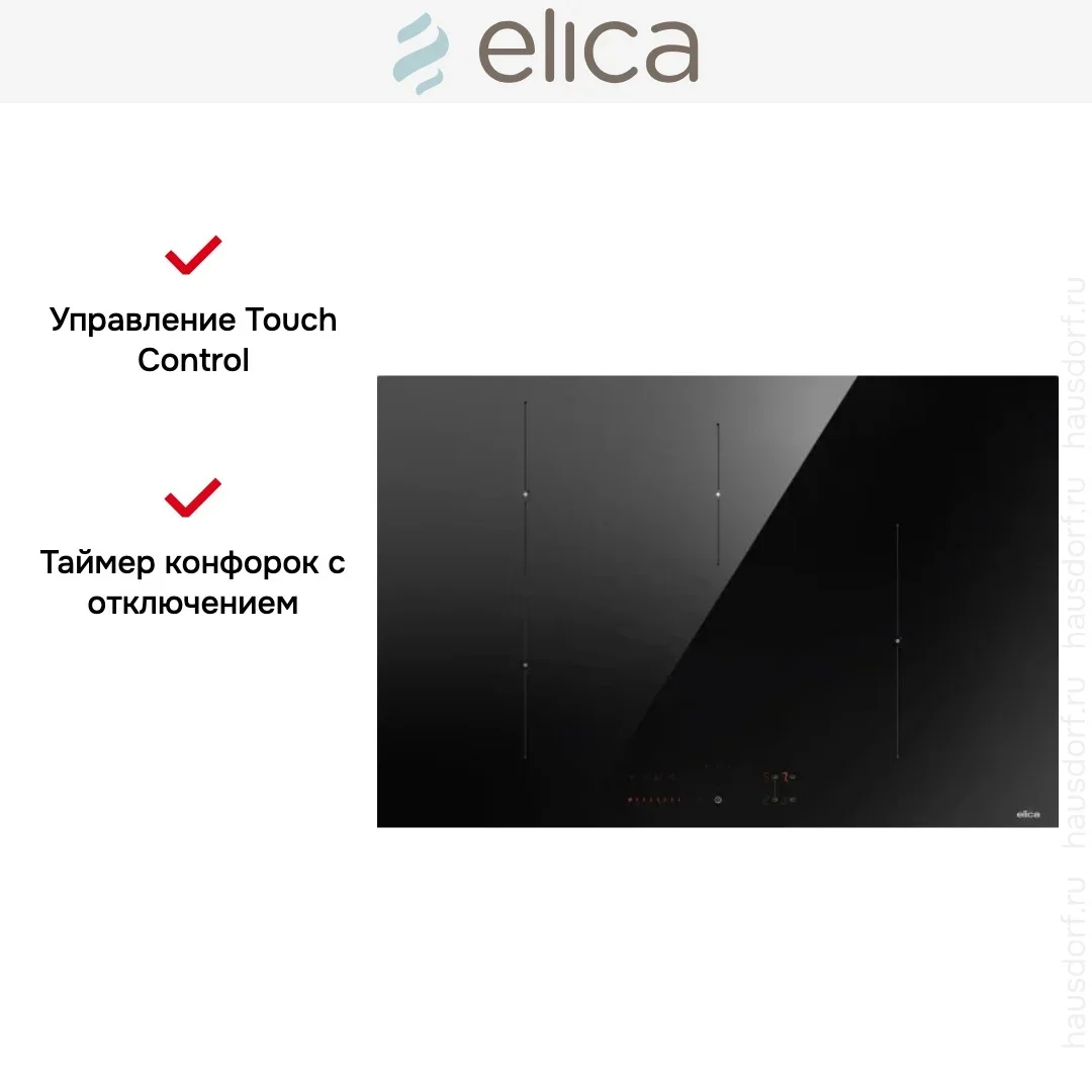 Варочная панель Elica Ratio 804 Plus BL — индукционная, независимая и рассчитана на электрическое подключение. Ее лаконичный черный корпус и гладкая стеклокерамическая поверхность создают строгий и изящный облик. Толщина корпуса всего 5.8 см делает прибор незаметным встраиваемым элементом рабочей зоны. Габариты 78×52 см и рекомендованная ниша 75×49 см подходят для большинства стандартных столешниц.